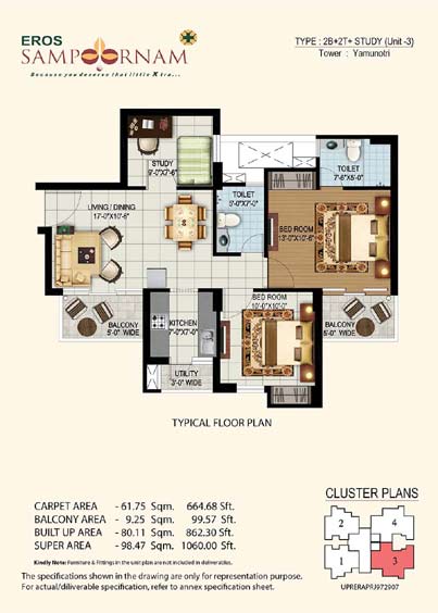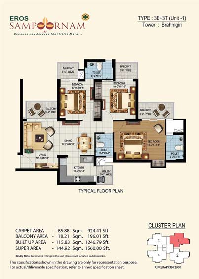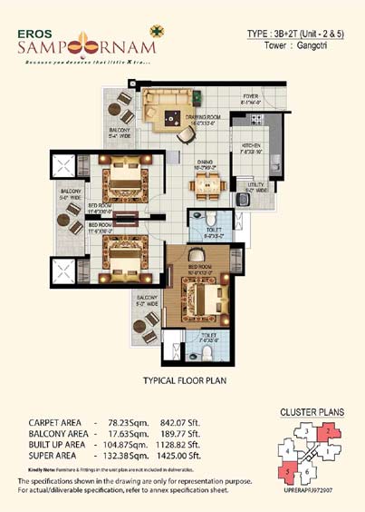 Eros Sampoornam Noida Extension (Greater Noida West), brings optimum value for investment in Delhi-NCR without losing out on the quality front. The project is based on the concept of Sampoornam which means complete holistic living in harmony with the mind, body and soul being at peace.
